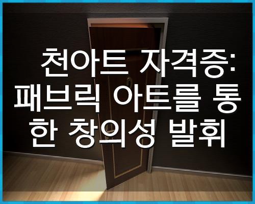 천아트 자격증: 패브릭 아트를 통한 창의성 발휘 정리해 보았습니다. 필요하신분들께 좋은 정보가 되셨길 바랍니다.