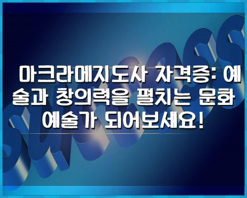 마크라메지도사 자격증은 예술과 창의력을 추구하는 분들에게 훌륭한 기회를 제공하며, 예술 작품을 통해 미적 감각을 표현하고 타인과 소통하는 능력을 향상시킬 수 있습니다. 한국문화예술교육협회의 이 자격증을 통해 예술의 세계로 여행을 떠나보세요