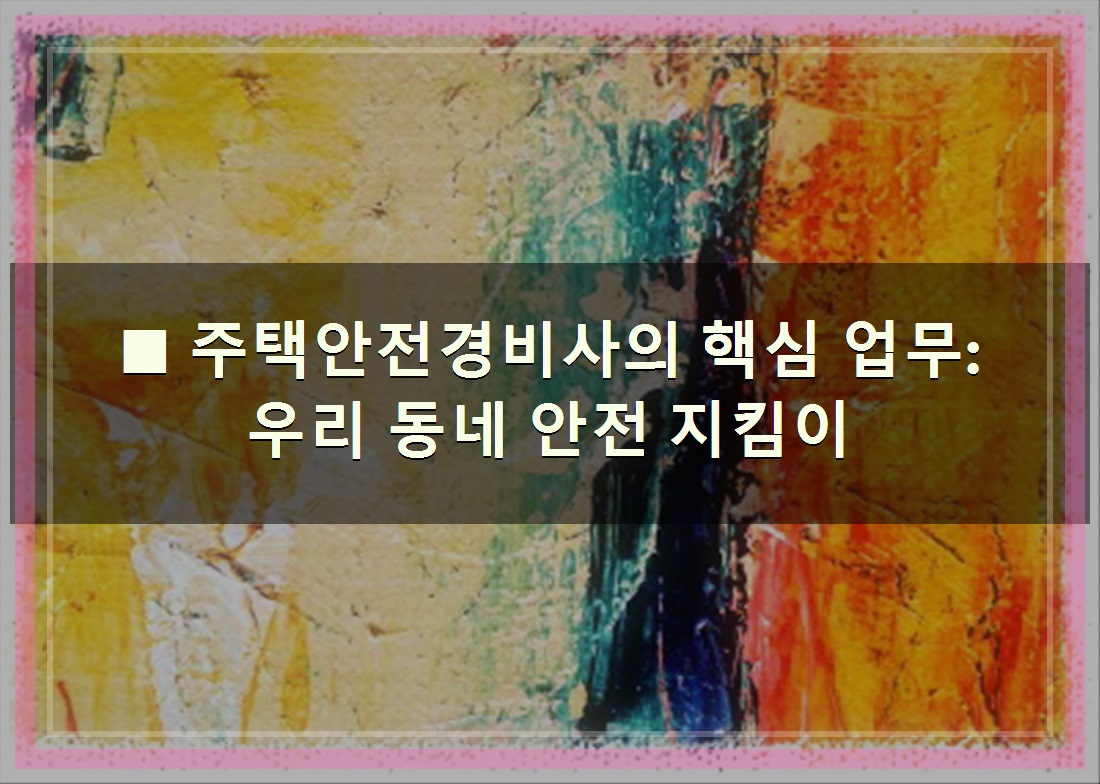 주택안전경비사는 우리 동네와 아파트의 안전을 책임지는 중요한 역할을 수행합니다. 주된 업무는 다음과 같습니다.